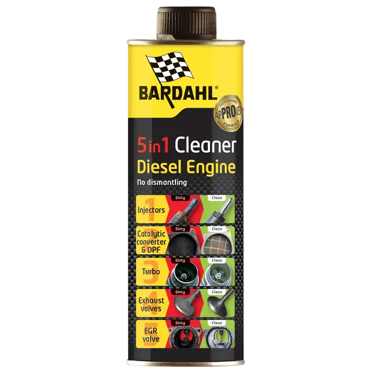 Bardahl Diesel 5 in 1 Cleaner — це інноваційний, висококонцентрований комплекс багатофункціональних присадок, розроблений для безпечного та ефективного очищення п’яти ключових компонентів дизельного двигуна без необхідності їх демонтажу.